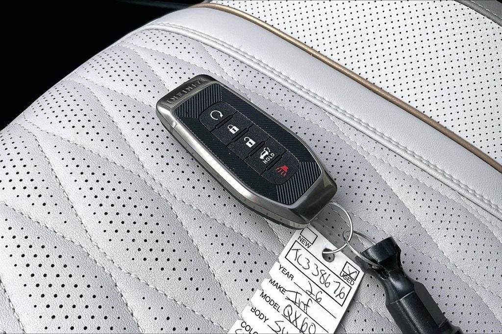 Grubbs INFINITI offers this Market Priced Pre-Owned 2026 INFINITI QX60 Autograph in Graphite Shadow/Black Obsidian with a premium Stone Gray interior. Fully inspected and all Eligible Vehicles are backed by our exclusive Grubbs Lifetime Powertrain Warranty, it comes loaded with features including Autograph Tech Package (ProPILOT Assist 2.1), Dark Cargo Package (Black Rear Bumper Film and Medic Kit), INFINITI Certified Pre-Owned Certified, 2-Tone Paint, 20 Speakers, 3rd row seats: bench, 4-Wheel Disc Brakes, ABS brakes, Air Conditioning, Anti-whiplash front head restraints, Apple CarPlay/Android Auto, Auto High-beam Headlights, Auto tilt-away steering wheel, Auto-dimming door mirrors, Auto-dimming Rear-View mirror, Automatic temperature control, Black Roof Rail Crossbars, Brake assist, Carpeted Floor Mats with Captains Chairs on 3rd Row Tray, Climate Controlled Massaging Front Bucket Seats, Dark Illuminated Kick Plates, Delay-off headlights, Dual front impact airbags, Dual front side impact airbags, Electronic Stability Control, Four wheel independent suspension, Front anti-roll bar, Front Bucket Seats, Front Center Armrest, Front dual zone A/C, Front reading lights, Fully automatic headlights, Garage door transmitter: HomeLink, Genuine wood door panel insert, Heads-Up Display, Heated door mirrors, Heated front seats, Heated rear seats, Heated steering wheel, Illuminated entry, INFINITI Radiant Dark Illuminated Cargo Scuff Plates, Knee airbag, Leather Shift Knob, Leather steering wheel, Low tire pressure warning, Memory seat, Navigation system: Google Built-in, Occupant sensing airbag, Outside temperature display, Overhead airbag, Overhead console, Panic alarm, Passenger door bin, Passenger vanity mirror, Power door mirrors, Power driver seat, Power Liftgate, Power moonroof: Panoramic, Power passenger seat, Power steering, Power windows, Radio data system, Radio: Klipsch Premiere Audio System, Rain sensing wipers, Rear air conditioning, Rear anti-roll bar, Rear reading lights, Rear side impact airbag, Rear window defroster, Rear window wiper, Reclining 3rd row seat, Security system, Semi Aniline Leather-Appointed Seating Surfaces, Speed control, Speed-sensing steering, Speed-Sensitive Wipers, Split folding rear seat, Spoiler, Steering wheel memory, Steering wheel mounted audio controls, Tachometer, Telescoping steering wheel, Tilt steering wheel, Traction control, Trip computer, Turn signal indicator mirrors, Variably intermittent wipers, Ventilated front seats, and Wheels: 20 x 8J Luxury Machined Aluminum Alloy.