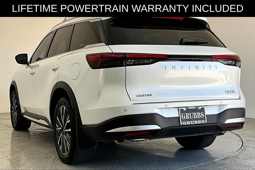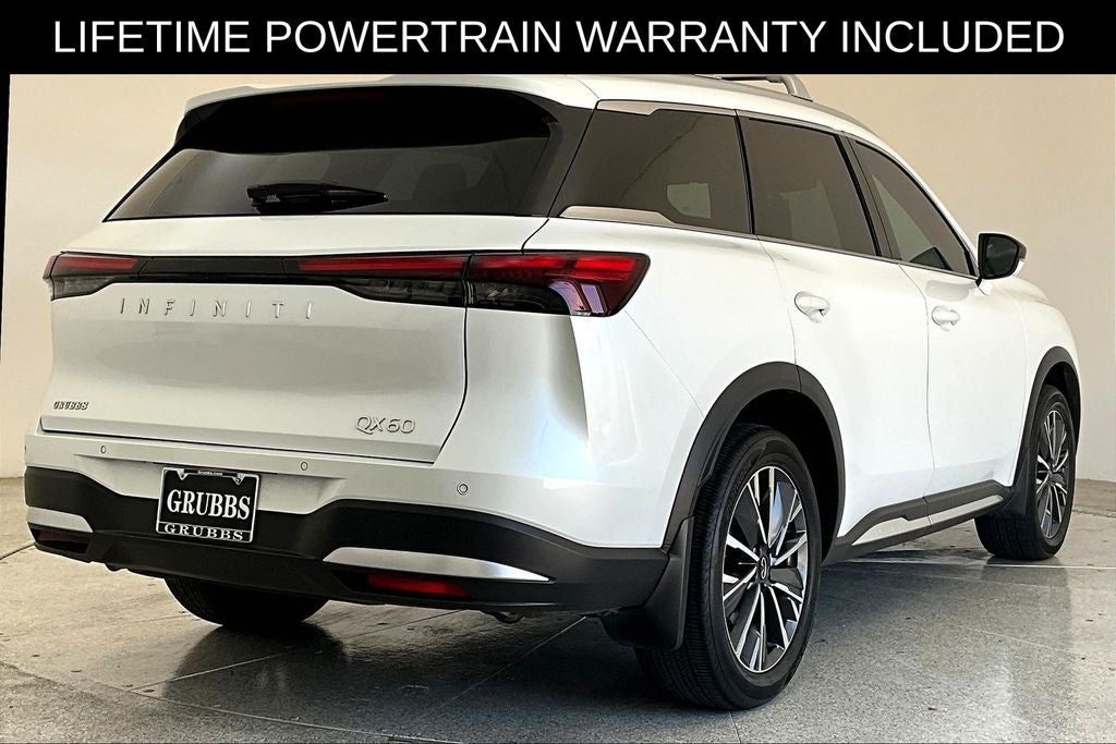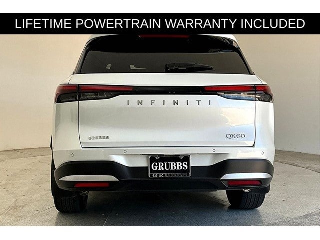 Recent Arrival! Certified. Grubbs INFINITI offers this Market Priced Pre-Owned 2026 INFINITI QX60 LUXE in Radiant White with a premium Graphite interior. Fully inspected and all Eligible Vehicles are backed by our exclusive Grubbs Lifetime Powertrain Warranty, it comes loaded with features including Cargo Package (Cargo Blocks, Cargo Mat, Cargo Net, Clear Rear Bumper Film, and Medic Kit), INFINITI Certified Pre-Owned Certified, 16 Speakers, 3rd row seats: bench, 4-Wheel Disc Brakes, ABS brakes, Air Conditioning, Alloy wheels, AM/FM radio: SiriusXM with 360L, Anti-whiplash front head restraints, Apple CarPlay/Android Auto, Auto High-beam Headlights, Auto tilt-away steering wheel, Auto-dimming door mirrors, Auto-dimming Rear-View mirror, Automatic temperature control, Bose Performance Series 17-Speaker Sound System, Brake assist, Bumpers: body-color, Climate Controlled Front Bucket Seats, Delay-off headlights, Driver door bin, Driver vanity mirror, Dual front impact airbags, Dual front side impact airbags, Electronic Stability Control, Emergency communication system: INFINITI InTouch, Floor Mats with Bench Seats on 3rd Row Tray, Four wheel independent suspension, Front anti-roll bar, Front Bucket Seats, Front Center Armrest, Front dual zone A/C, Front reading lights, Fully automatic headlights, Garage door transmitter: HomeLink, Heated door mirrors, Heated front seats, Heated rear seats, Heated steering wheel, Illuminated entry, Knee airbag, Leather Shift Knob, Leather steering wheel, Literature Kit, Low tire pressure warning, Memory seat, Navigation system: Google Built-in, Occupant sensing airbag, Outside temperature display, Overhead airbag, Overhead console, Panic alarm, Passenger door bin, Passenger vanity mirror, Power door mirrors, Power driver seat, Power Liftgate, Power moonroof: Panoramic, Power passenger seat, Power steering, Power windows, Radio data system, Radio: Klipsch Premium Audio System, Rain sensing wipers, Rear air conditioning, Rear anti-roll bar, Rear reading lights, Rear seat center armrest, Rear side impact airbag, Rear window defroster, Rear window wiper, Reclining 3rd row seat, Remote keyless entry, Security system, Silver Roof Rail Crossbars, Speed control, Speed-sensing steering, Speed-Sensitive Wipers, Split folding rear seat, Spoiler, Steering wheel memory, Steering wheel mounted audio controls, Super Premium Paint, Tachometer, Tailorfit-Appointed Seating Surfaces, Telescoping steering wheel, Tilt steering wheel, Traction control, Trip computer, Turn signal indicator mirrors, Variably intermittent wipers, Ventilated front seats, and Wheels: 20 x 8J Machined Aluminum Alloy. 2026 INFINITI QX60 LUXE 4D Sport Utility FWD 2.0L I4 PDI Turbocharged DOHC 16V 268hp 9-Speed Automatic Radiant White Upgraded Wheel Package.