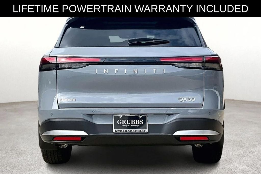Recent Arrival! Grubbs INFINITI offers this Market Priced Pre-Owned 2026 INFINITI QX60 LUXE in Graphite Shadow with a premium Stone Gray interior. Fully inspected and all Eligible Vehicles are backed by our exclusive Grubbs Lifetime Powertrain Warranty, it comes loaded with features including Cargo Package (Cargo Blocks, Cargo Mat, Cargo Net, Clear Rear Bumper Film, and Medic Kit), 16 Speakers, 3rd row seats: bench, 4-Wheel Disc Brakes, ABS brakes, Air Conditioning, Alloy wheels, AM/FM radio: SiriusXM with 360L, Anti-whiplash front head restraints, Apple CarPlay/Android Auto, Auto High-beam Headlights, Auto tilt-away steering wheel, Auto-dimming door mirrors, Auto-dimming Rear-View mirror, Automatic temperature control, Bose Performance Series 17-Speaker Sound System, Brake assist, Bumpers: body-color, Climate Controlled Front Bucket Seats, Delay-off headlights, Driver door bin, Driver vanity mirror, Dual front impact airbags, Dual front side impact airbags, Electronic Stability Control, Emergency communication system: INFINITI InTouch, Four wheel independent suspension, Front anti-roll bar, Front Bucket Seats, Front Center Armrest, Front dual zone A/C, Front reading lights, Fully automatic headlights, Garage door transmitter: HomeLink, Heated door mirrors, Heated front seats, Heated rear seats, Heated steering wheel, Illuminated entry, INFINITI Radiant Silver Illuminated Kick Plates, Knee airbag, Leather Shift Knob, Leather steering wheel, Low tire pressure warning, Memory seat, Navigation system: Google Built-in, Occupant sensing airbag, Outside temperature display, Overhead airbag, Overhead console, Panic alarm, Passenger door bin, Passenger vanity mirror, Power door mirrors, Power driver seat, Power Liftgate, Power moonroof: Panoramic, Power passenger seat, Power steering, Power windows, Radio data system, Radio: Klipsch Premium Audio System, Rain sensing wipers, Rear air conditioning, Rear anti-roll bar, Rear reading lights, Rear seat center armrest, Rear side impact airbag, Rear window defroster, Rear window wiper, Reclining 3rd row seat, Remote keyless entry, Security system, Speed control, Speed-sensing steering, Speed-Sensitive Wipers, Split folding rear seat, Spoiler, Steering wheel memory, Steering wheel mounted audio controls, Tachometer, Tailorfit-Appointed Seating Surfaces, Telescoping steering wheel, Tilt steering wheel, Traction control, Trip computer, Turn signal indicator mirrors, Variably intermittent wipers, Ventilated front seats, and Wheels: 20 x 8J Machined Aluminum Alloy. 2026 INFINITI QX60 LUXE 4D Sport Utility FWD 2.0L I4 PDI Turbocharged DOHC 16V 268hp 9-Speed Automatic Graphite Shadow Upgraded Wheel Package.