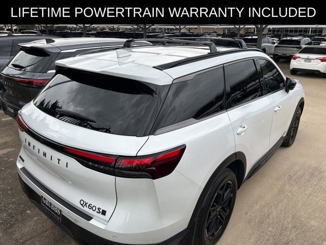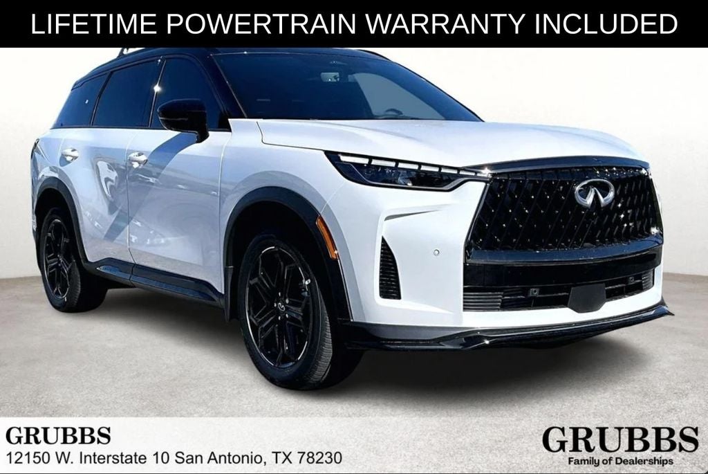 Recent Arrival! Certified. Grubbs INFINITI offers this Market Priced Pre-Owned 2026 INFINITI QX60 SPORT in Radiant White with a premium Graphite interior. Fully inspected and all Eligible Vehicles are backed by our exclusive Grubbs Lifetime Powertrain Warranty, it comes loaded with features including Dark Cargo Package (Black Rear Bumper Film, Cargo Blocks, Cargo Mat, and Medic Kit), INFINITI Certified Pre-Owned Certified, 17 Speakers, 3rd row seats: bench, 4-Wheel Disc Brakes, ABS brakes, Air Conditioning, Alloy wheels, AM/FM radio: SiriusXM with 360L, Anti-whiplash front head restraints, Apple CarPlay/Android Auto, Auto High-beam Headlights, Auto tilt-away steering wheel, Auto-dimming door mirrors, Auto-dimming Rear-View mirror, Automatic temperature control, Black Roof Rail Crossbars, Bose Performance Series 17-Speaker Sound System, Brake assist, Bumpers: body-color, Carpeted Floor Mats with Captains Chairs on 3rd Row Tray, Climate Controlled Front Bucket Seats, Delay-off headlights, Driver door bin, Driver vanity mirror, Dual front impact airbags, Dual front side impact airbags, Electronic Stability Control, Emergency communication system: INFINITI InTouch, Four wheel independent suspension, Front anti-roll bar, Front Bucket Seats, Front Center Armrest, Front dual zone A/C, Front reading lights, Fully automatic headlights, Garage door transmitter: HomeLink, Genuine wood door panel insert, Heated door mirrors, Heated front seats, Heated rear seats, Heated steering wheel, Illuminated entry, INFINITI Radiant Dark Illuminated Cargo Scuff Plates, Knee airbag, Leather Shift Knob, Leather steering wheel, Literature Kit, Low tire pressure warning, Memory seat, Navigation system: Google Built-in, Occupant sensing airbag, Outside temperature display, Overhead airbag, Overhead console, Panic alarm, Passenger door bin, Passenger vanity mirror, Power door mirrors, Power driver seat, Power Liftgate, Power moonroof: Panoramic, Power passenger seat, Power steering, Power windows, Radio data system, Radio: Klipsch Premium Audio System, Rain sensing wipers, Rear air conditioning, Rear anti-roll bar, Rear reading lights, Rear side impact airbag, Rear window defroster, Rear window wiper, Reclining 3rd row seat, Remote keyless entry, Security system, Speed control, Speed-sensing steering, Speed-Sensitive Wipers, Split folding rear seat, Spoiler, Steering wheel memory, Steering wheel mounted audio controls, Super Premium Paint, Tachometer, Tailorfit-Appointed Seating Surfaces, Telescoping steering wheel, Tilt steering wheel, Traction control, Trip computer, Turn signal indicator mirrors, Variably intermittent wipers, Ventilated front seats, and Wheels: 20 x 8J Unique Sporty Machined Aluminum Alloy. 2026 INFINITI QX60 SPORT 4D Sport Utility AWD 2.0L I4 PDI Turbocharged DOHC 16V 268hp 9-Speed Automatic Radiant White Upgraded Wheel Package.